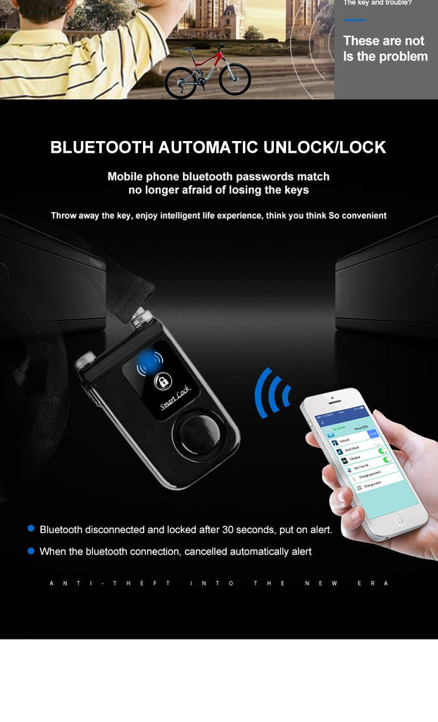 Powerful anti-theft smart cable lock, has the functions of anti-cutting, anti disassembling, removing alarm and vibration alarm.the waterproof grade can use both indoors and outdoors. Alarm sound up to 110dB, effectively frighten the thefts.