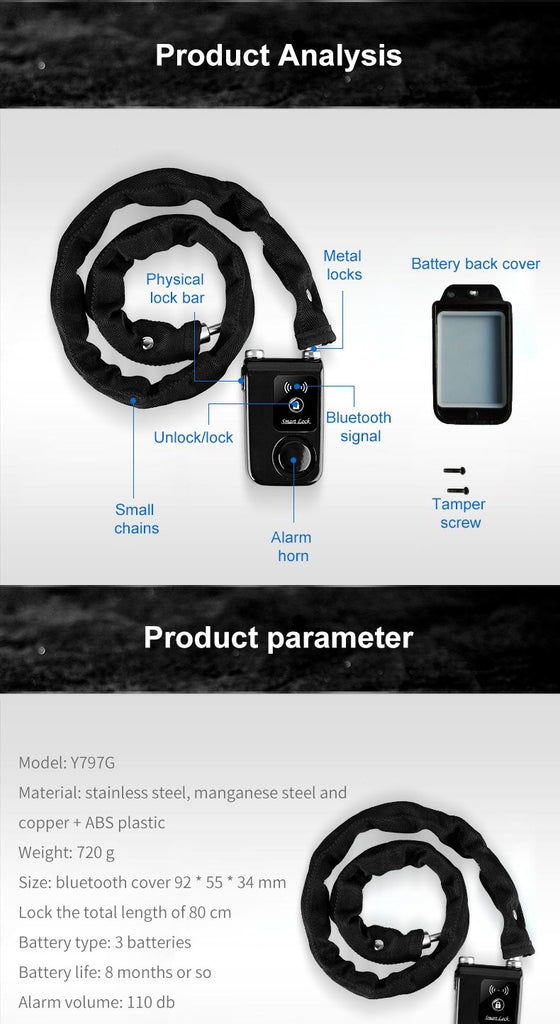 The strong anti-theft high-quality material, durable and safe.Easy control with APP, you can lock and unlock your bike or motorcycle with your phone, compatible with both iOS and Android system.